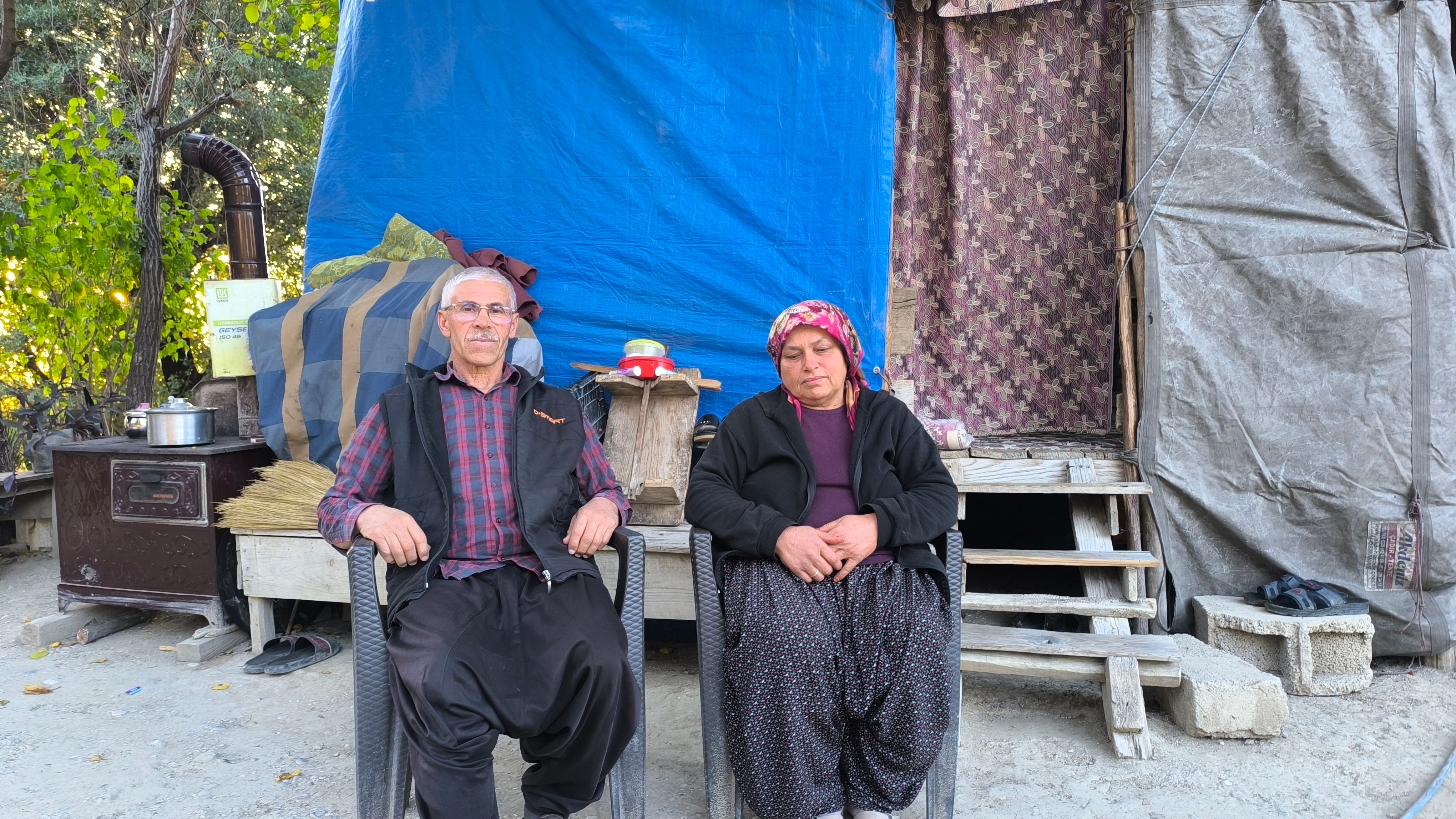 Konuya ilişkin açıklama yapan İsmet İspaha, “6 Şubat Kahramanmaraş depreminde bizim evimiz büyük hasar aldı. Ağır hasar yazıldı ekipler tarafından yıkıldı. Öncesinden tapu yoktu, tapusuz diye yaptıramadık. Tapu çıktı biz de ondan sonra devlete başvurduk, evraklar falan her şey bitti. Devlet 750 bin lira veriyor o da zaten yetmiyor diğer yarısını da biz karşılayamıyoruz. Bir gelirimiz yok, hiçbir şey yok. 10 tane bir keçi var o da hiçbir şeye yaradığı yok, geçimim o. Bir maaşım yok hiçbir kredi çekemiyorum. Kızımın biri kredi çekti demir aldı o da battı zaten. Onu da ödeyemiyor onunla uğraşıyor. Biz de böyle açıkta kaldık hava çok soğuk. Çadır çektik böyle idare ediyoruz. Battaniyenin, yorganın altında duruyoruz. Bu üçüncü senesi işte, üç senedir böyle devam ediyoruz. 10 keçi dışında bir gelirimiz yok” ifadelerini kullandı.