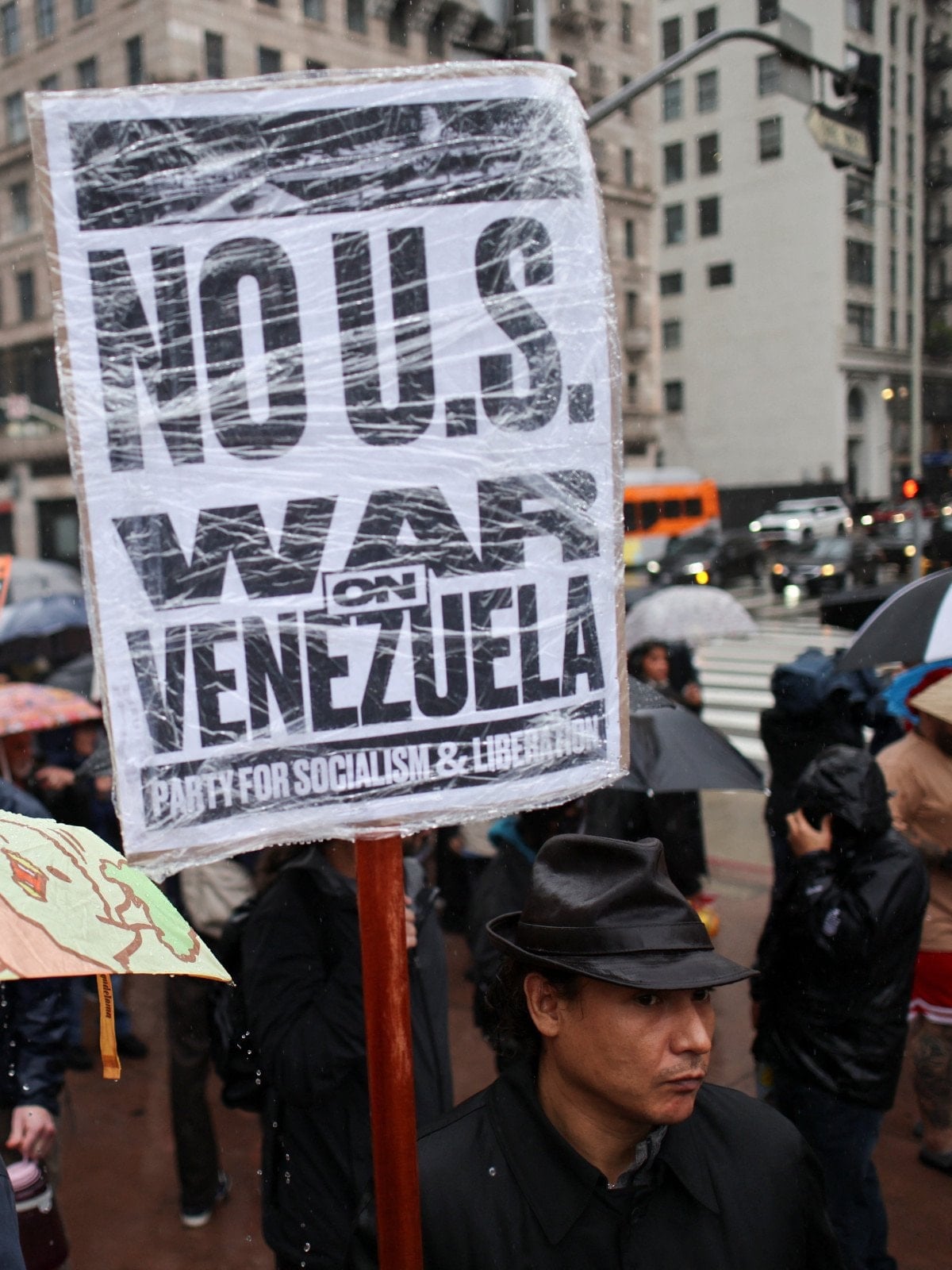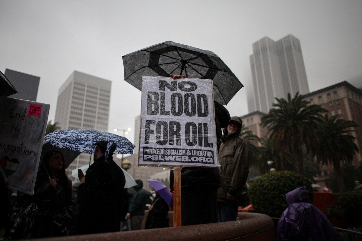 “Los Angeles, Venezuela’ya karşı savaş istemiyor” şiarıyla bir araya gelen yüzlerce kişi, yağmura aldırış etmeden şehir merkezine yürüdü. Protestolarda, ABD’nin Venezuela halkına yönelik bombalamaları ve askeri harekâtı kınandı.