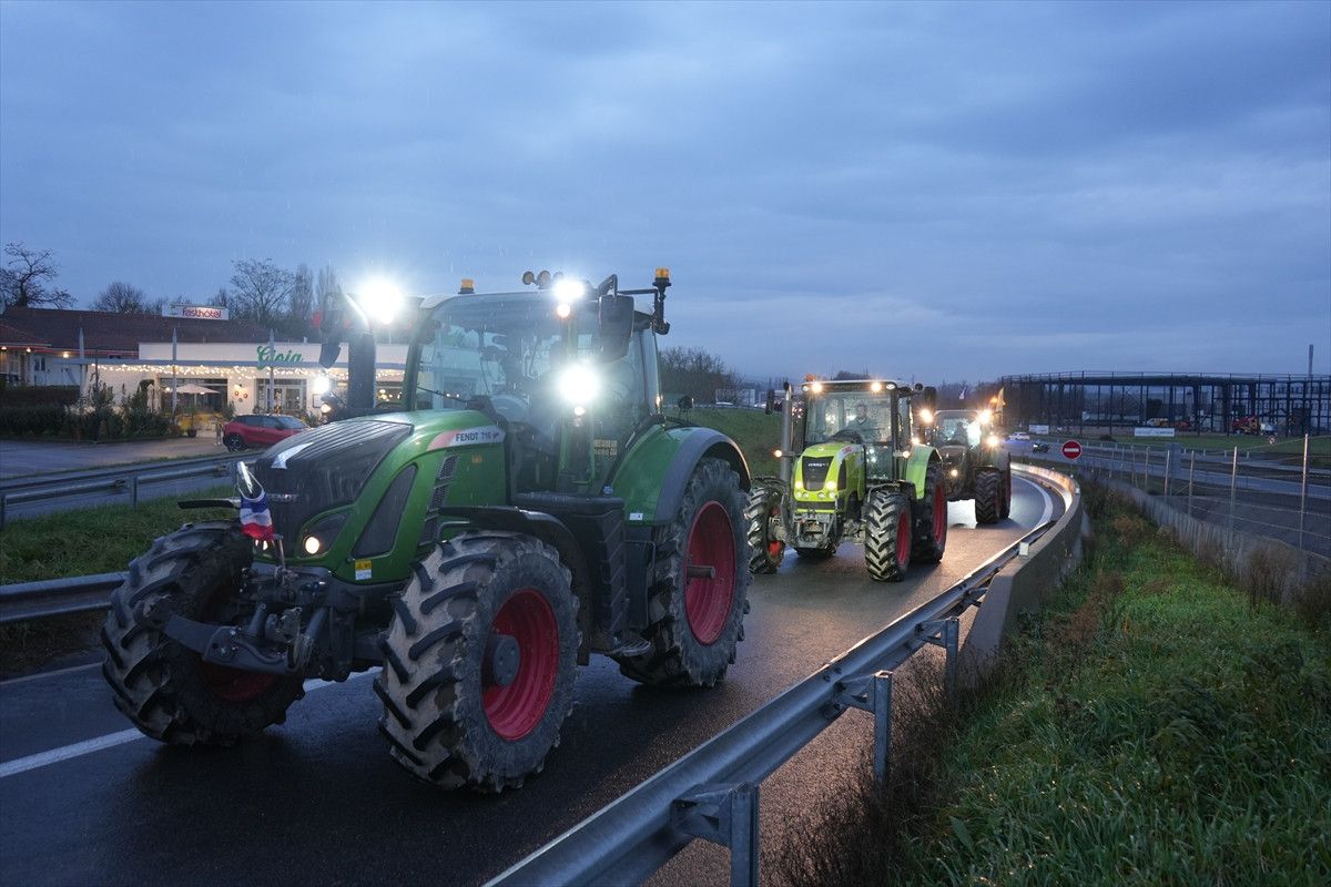 Fransa’nın Saone-et-Loire vilayetine bağlı Macon kentinde çiftçiler, ülke genelinde süren tarım protestoları kapsamında ana ulaşım güzergâhlarında eylem yaptı. Göstericiler, traktörlerle ve çeşitli araçlarla ulusal yolu kapatarak çift yönlü trafiği durdurdu.
