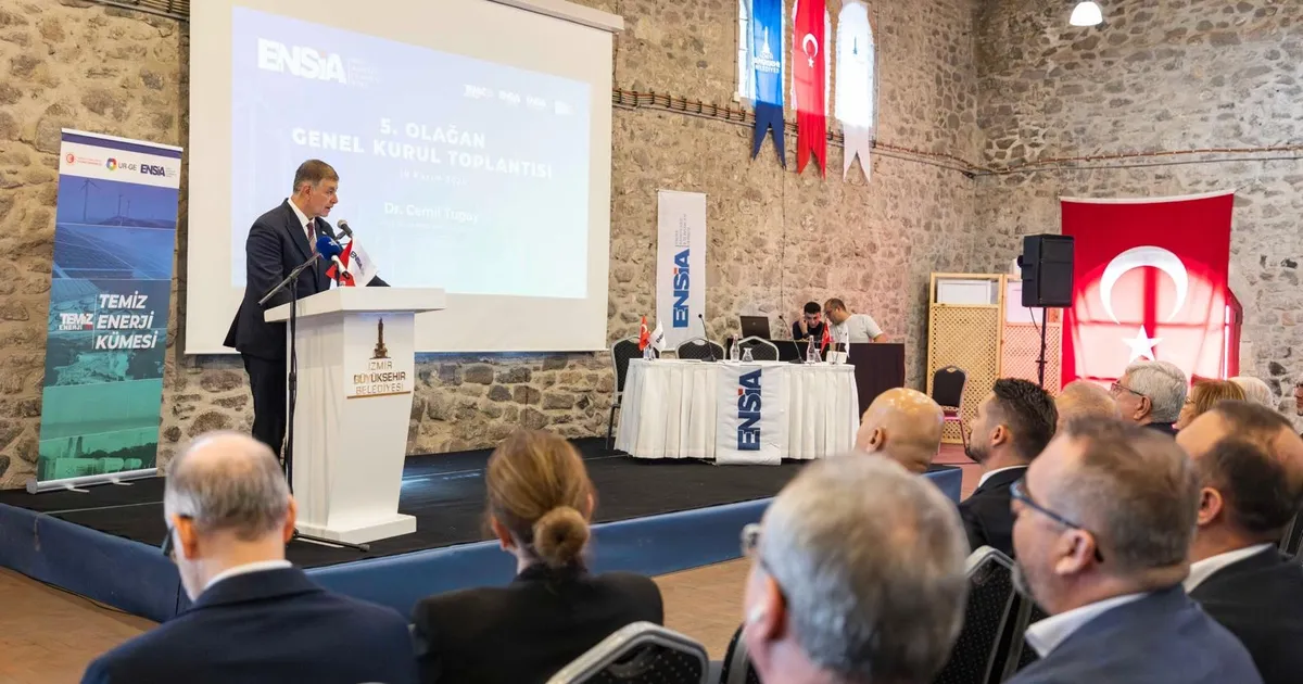 İzmir Büyükşehir Belediye Başkanı Dr. Cemil Tugay, Enerji Sanayicileri ve İş İnsanları Derneği’nin (ENSİA) 5. Olağan Genel Kurul Toplantısı’na katıldı. Tarihi Havagazı Fabrikası’nda düzenlenen toplantıya Başkan Dr. Cemil Tugay’ın yanı sıra Ege İhracatçı Birlikleri (EİB) Koordinatör Başkanı Jak Eskinazi, Batı Anadolu Sanayici ve İş İnsanları Derneği (BASİFED) Yönetim Kurulu Başkanı Semiha Güneş, ENSİA Yönetim Kurulu Başkanı Alper Kalaycı ve yönetim kurulu üyeleri, sivil toplum kuruluşları ile iş dünyasının temsilcileri katıldı.