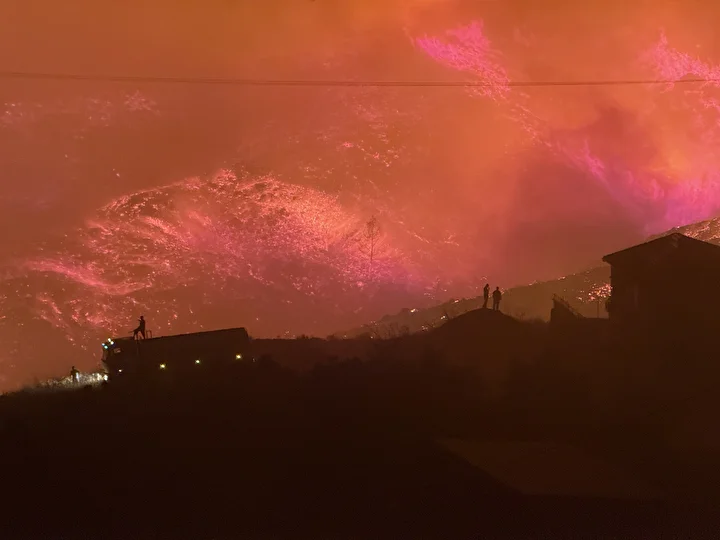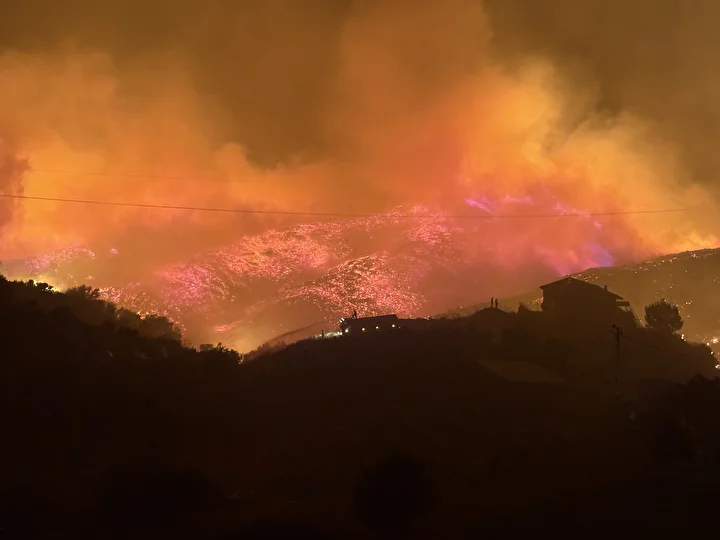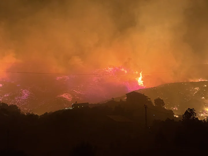 Öte yandan, bölgede bulunan evler ve seralar alevlerin arasında kalırken, tahliye çalışmaları da devam ediyor.